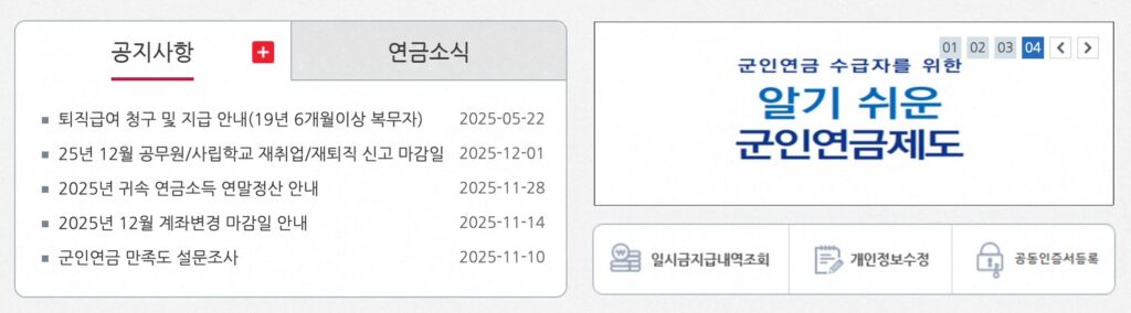 온라인 조회 군인연금 지급과 수급자 관리는 국방부 직할부대인 국군재정관리단에서 담당하고 있습니다. 군인연금 홈페이지(mps.mil.kr)에서 본인인증 후 연금 수령액을 확인할 수 있습니다.